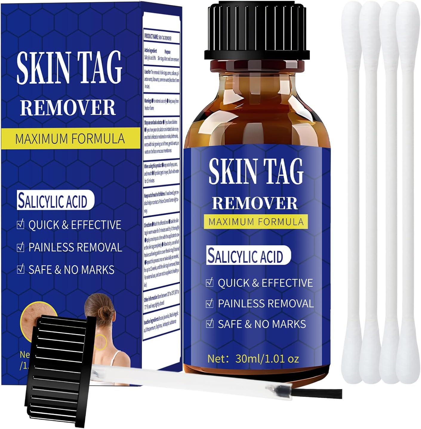 Fast-Acting Skin Tag Remover for Body and Neck – Natural, Mild Salicylic Acid Formula, Use a Brush applicator Skin tag Remover Precisely and painlessly and Quickly.Safe for Sensitive skin30ML
